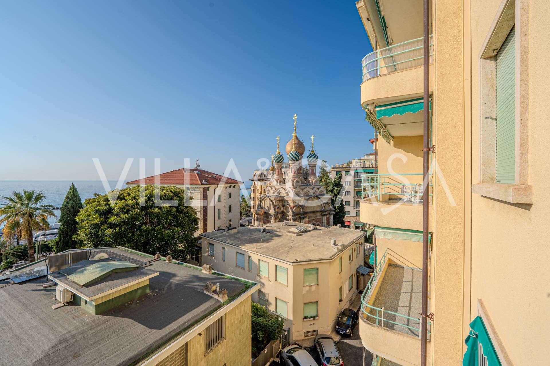 宽敞的四居室公寓位于圣雷莫市中心,正对美丽的俄罗斯教堂,坐落于一个高档住宅区,环境优美。公寓面积为104平方米,位于四楼,可欣赏到海景和俄罗斯教堂独特的建筑风格。