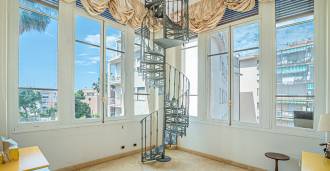 这座尊贵的住宅面积约2000平方米,共有6层,其中两层位于地下。所有楼层通过白色大理石螺旋楼梯和优雅的锻铁栏杆连接,还配备电梯,确保各层之间的舒适移动。室内因手工制作的彩色玻璃高窗而充满光线,房子保留了由阿尔比索拉工匠根据原始样本制作的古老壁炉和陶土烟囱。
