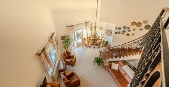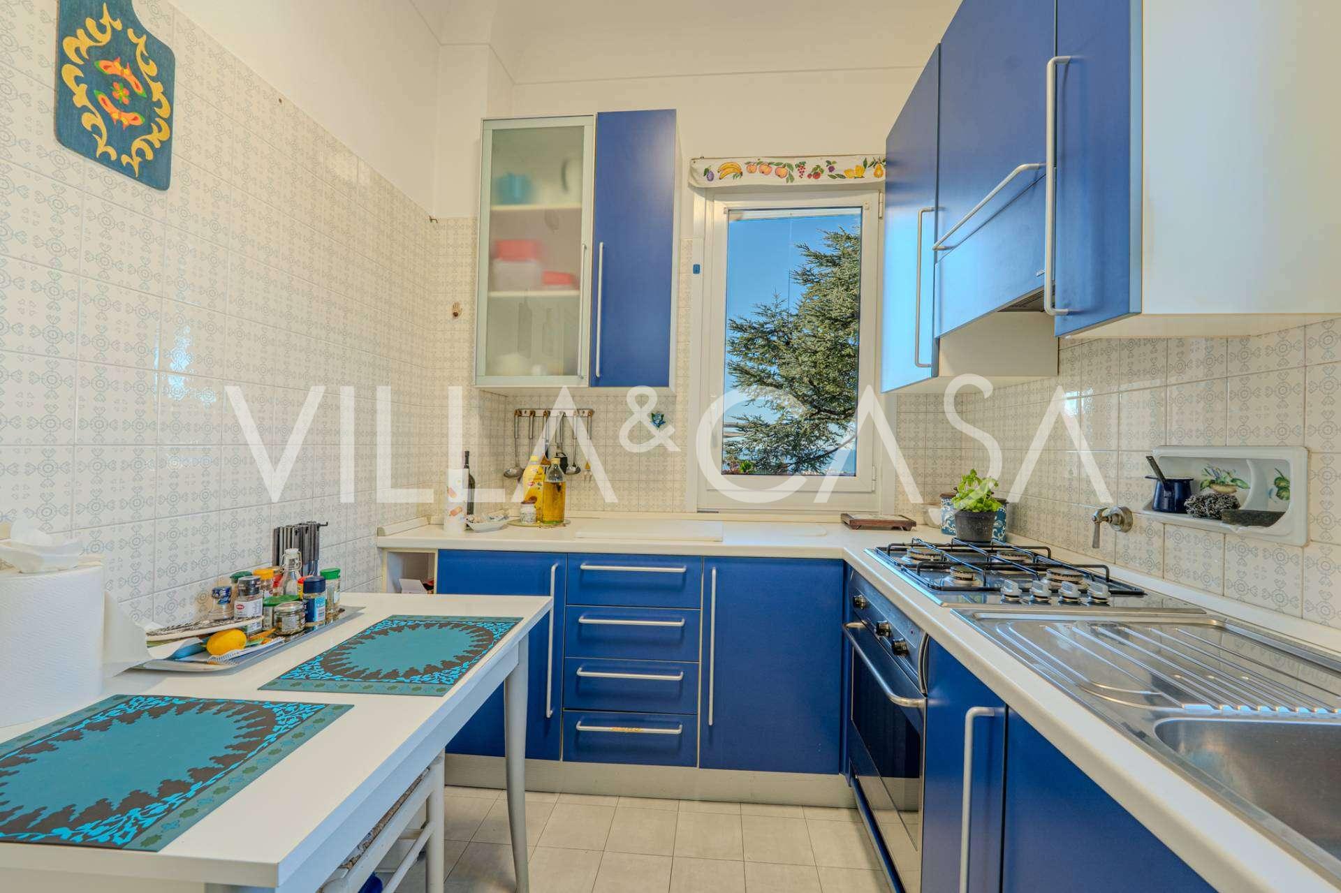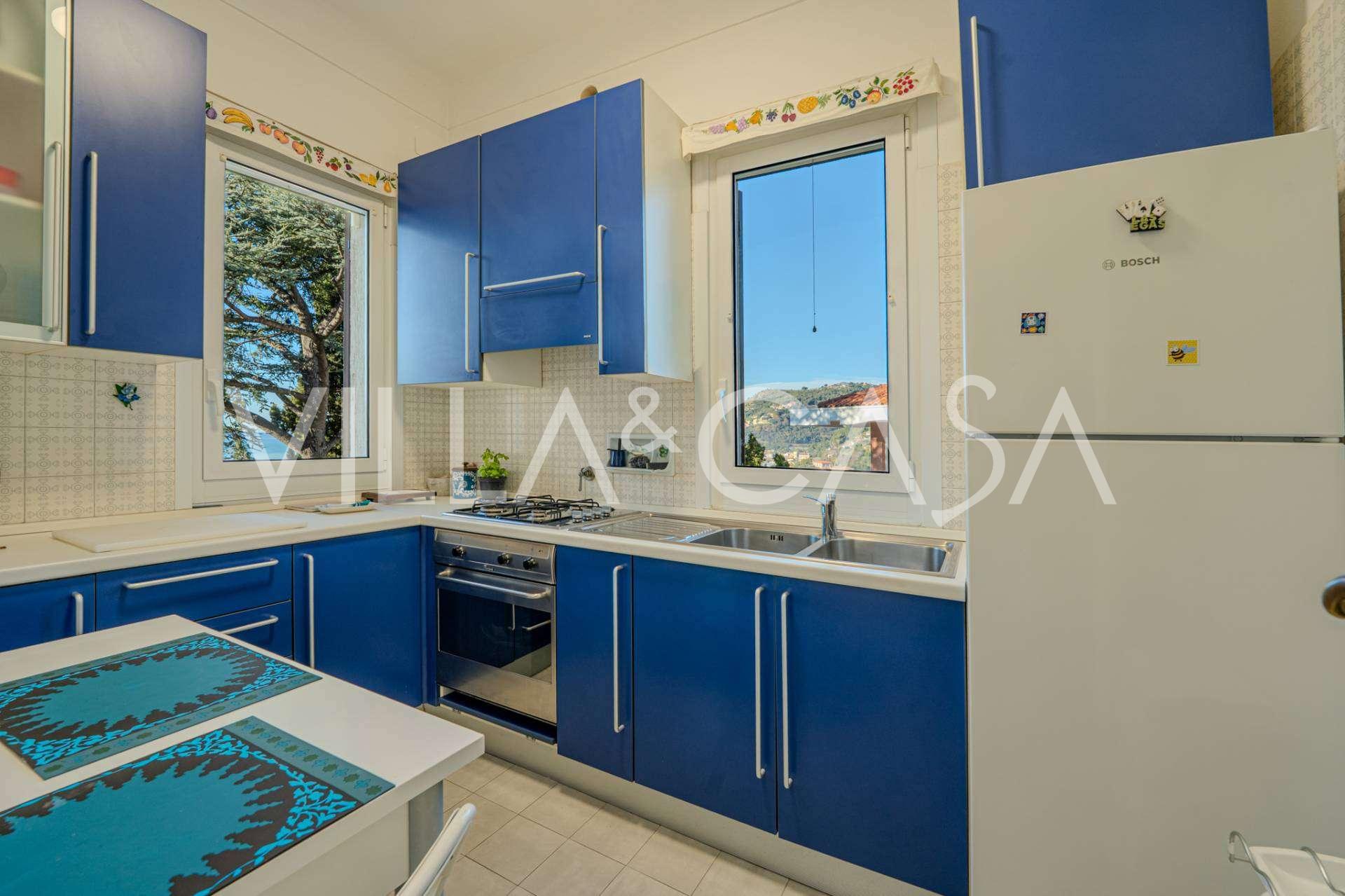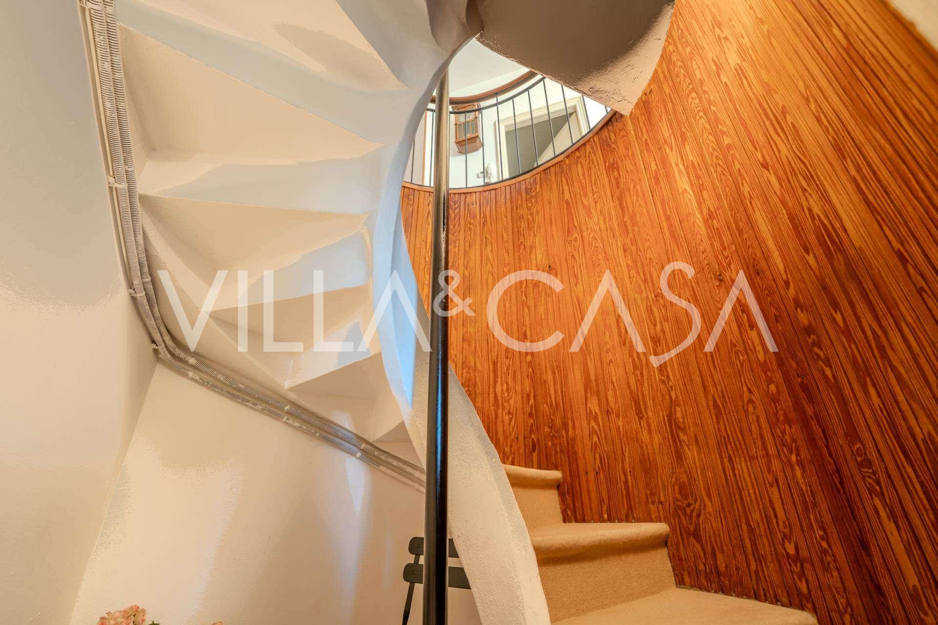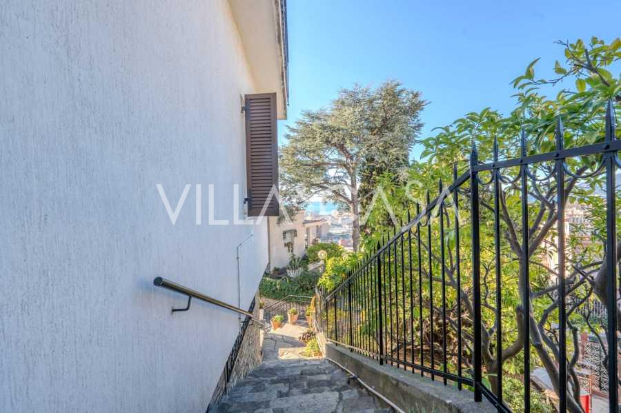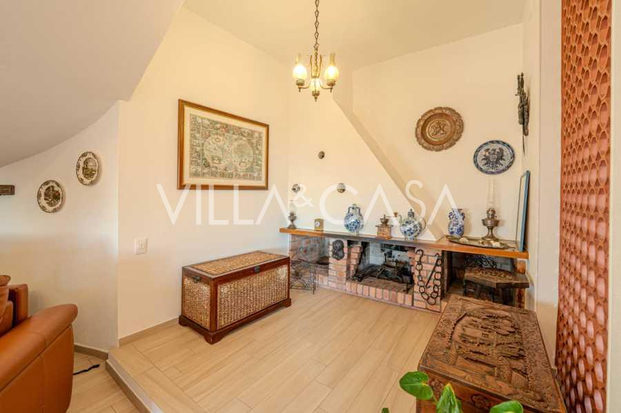 在第二层:宽敞的客厅配有壁炉并享有海景,可通往花园和阳台。厨房也有海景。浴室。