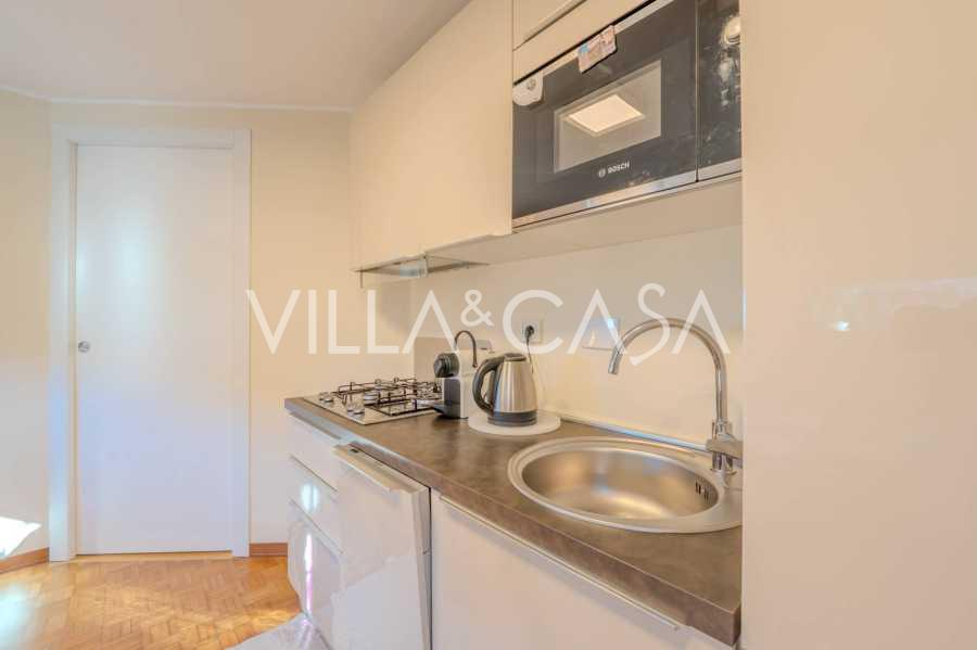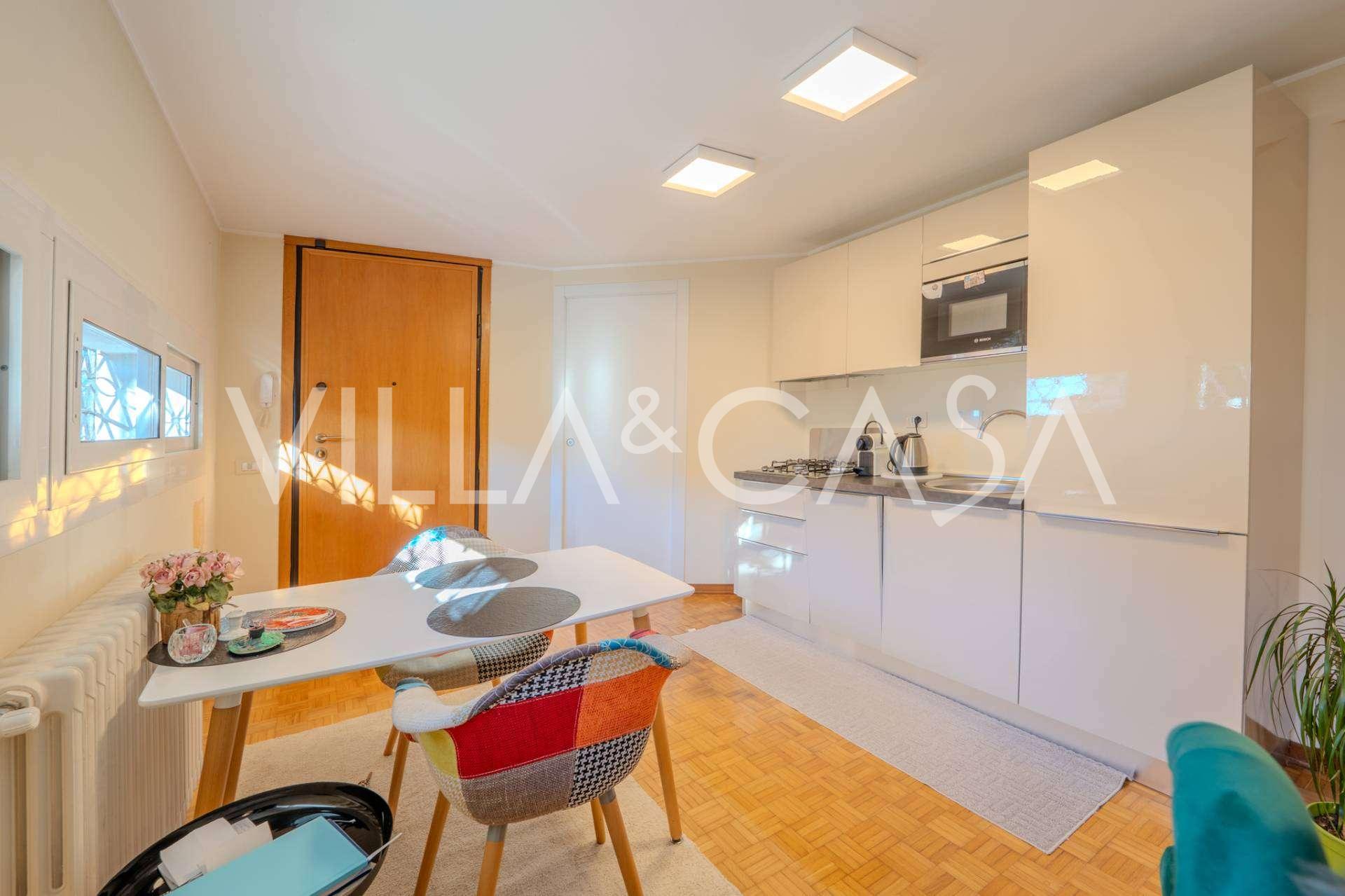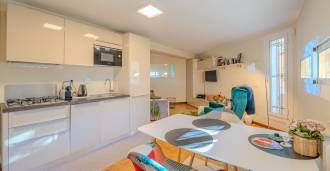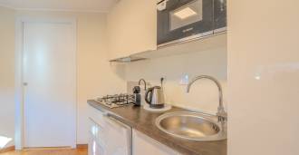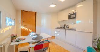 在第一层,有独立的公寓,包括:带衣柜的门厅、带厨房的客厅和浴室。
