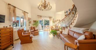 价格包括车库。花园面积约300平方米。房子旁边有一栋总面积约30平方米的小建筑,售价65,000欧元,可用作出租的居住空间。别墅状况良好,配有独立供暖系统。此外,还可以单独购买面积为60平方米的车库,售价120,000欧元。