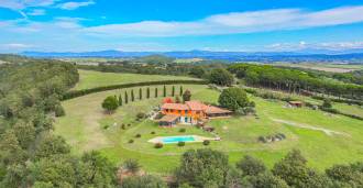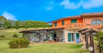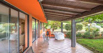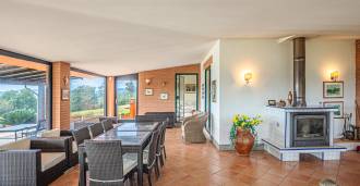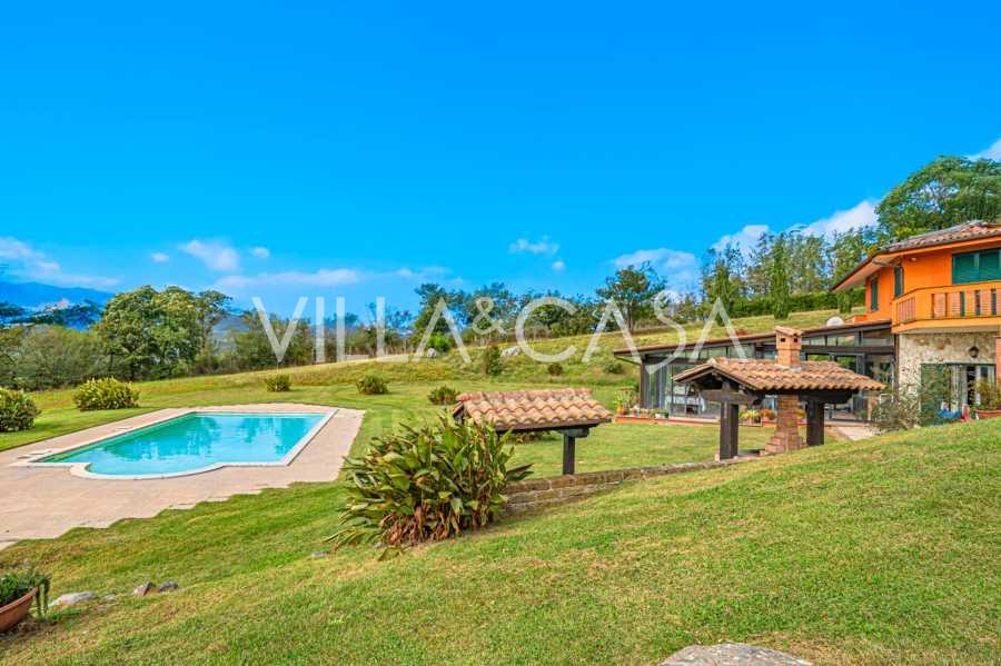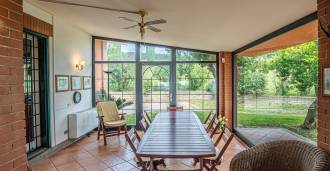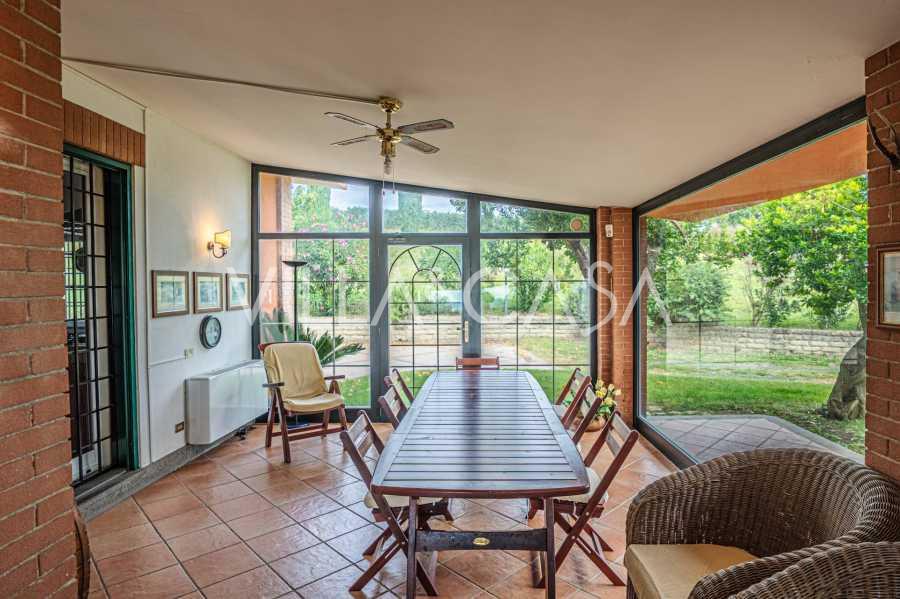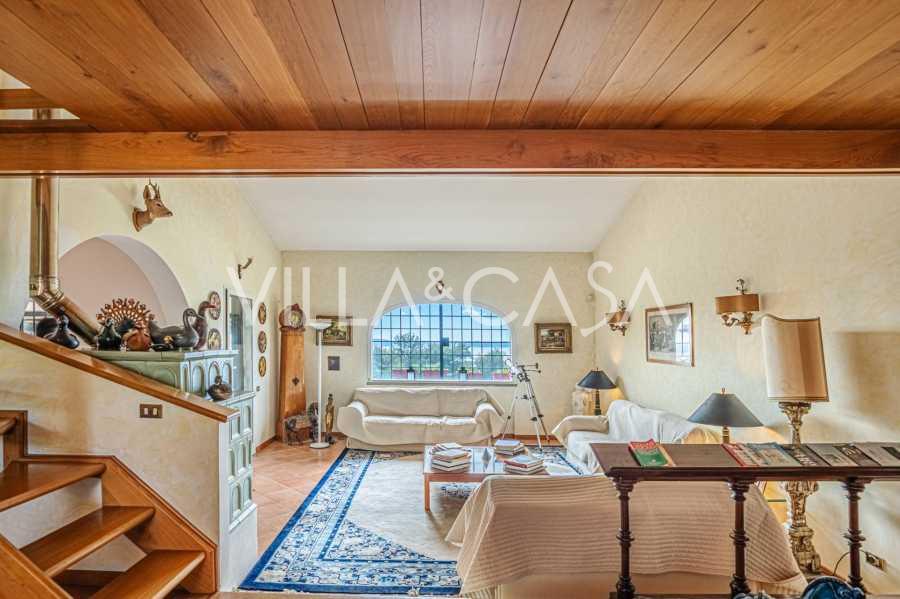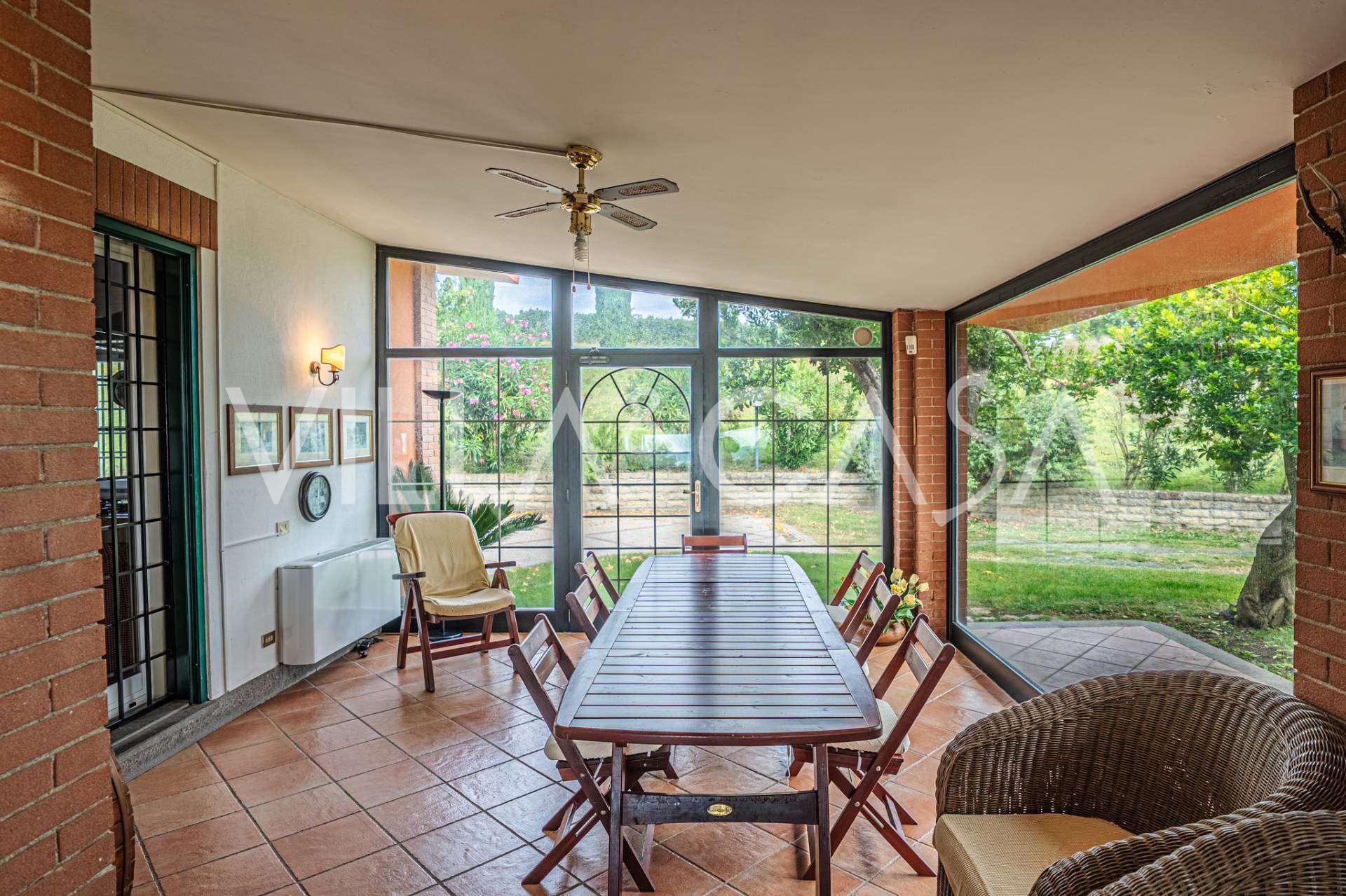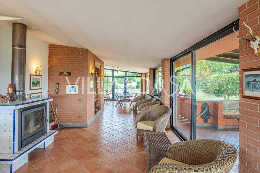 这座位于特雷维尼亚诺-罗马诺的精致而私密的别墅,面积超过500平方米,被超过三公顷的私人公园绿地所环绕。场地完全围栏,并以丰富的地中海植物装饰,营造出一种完全宁静和谐的氛围。