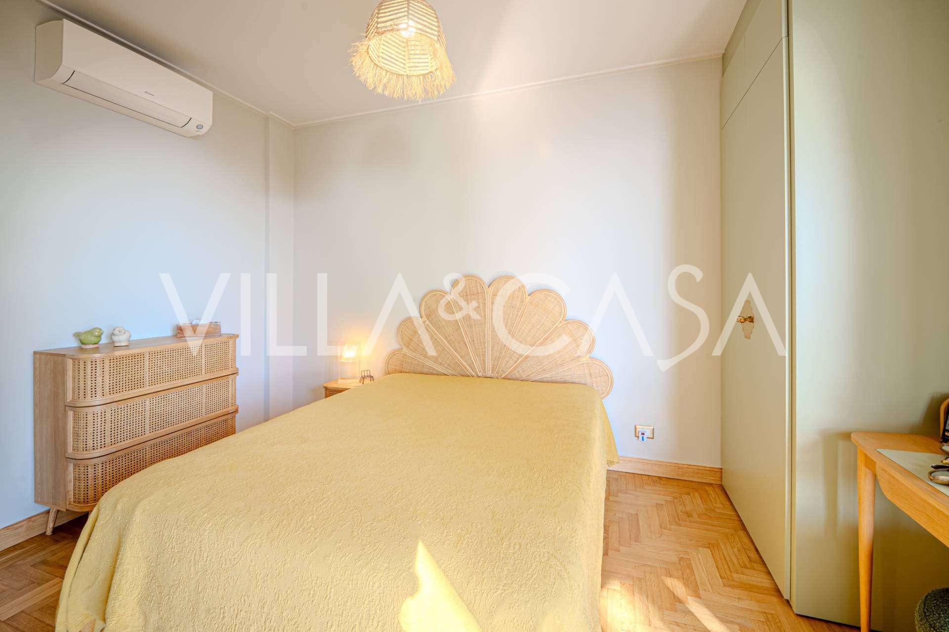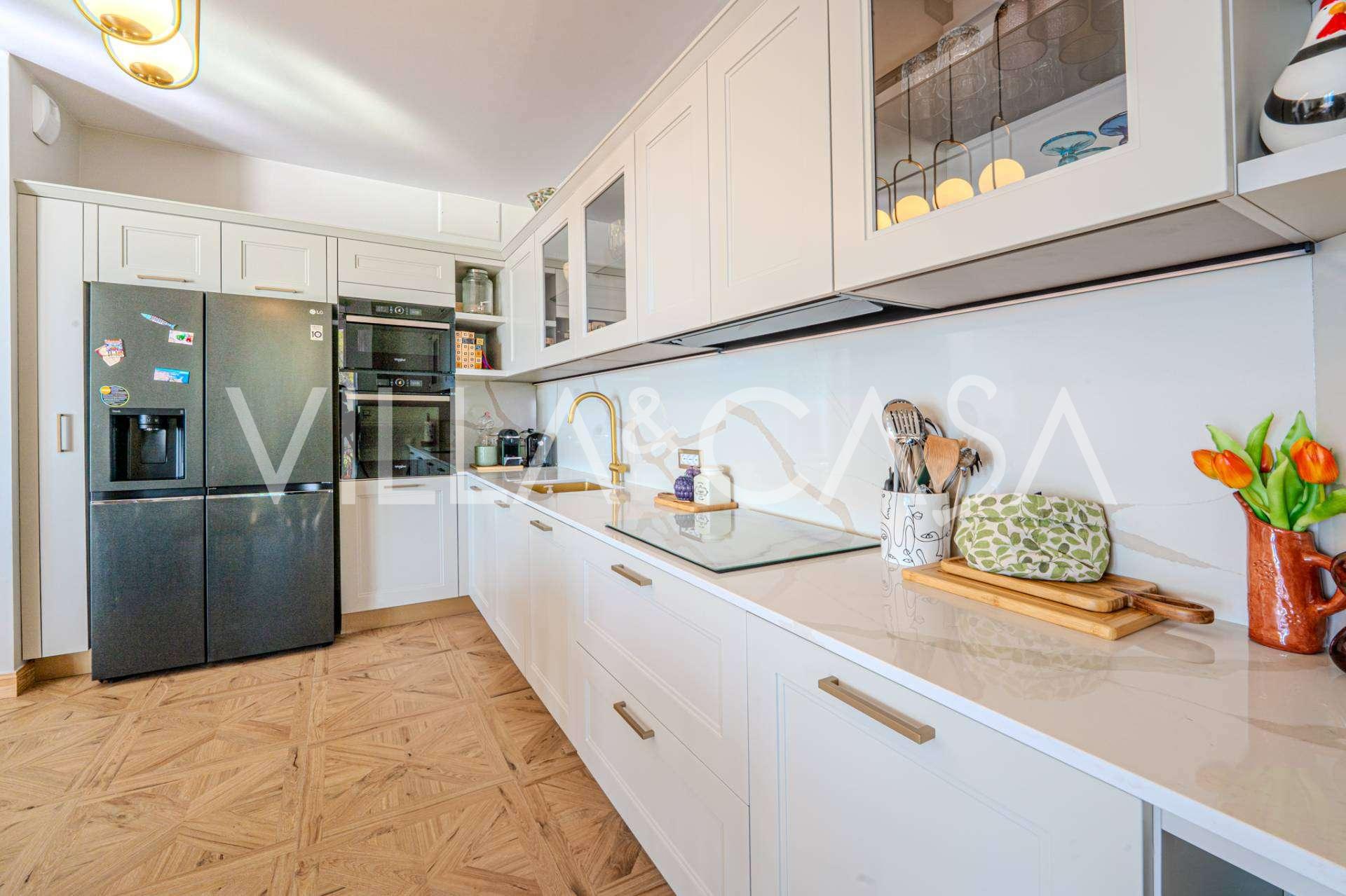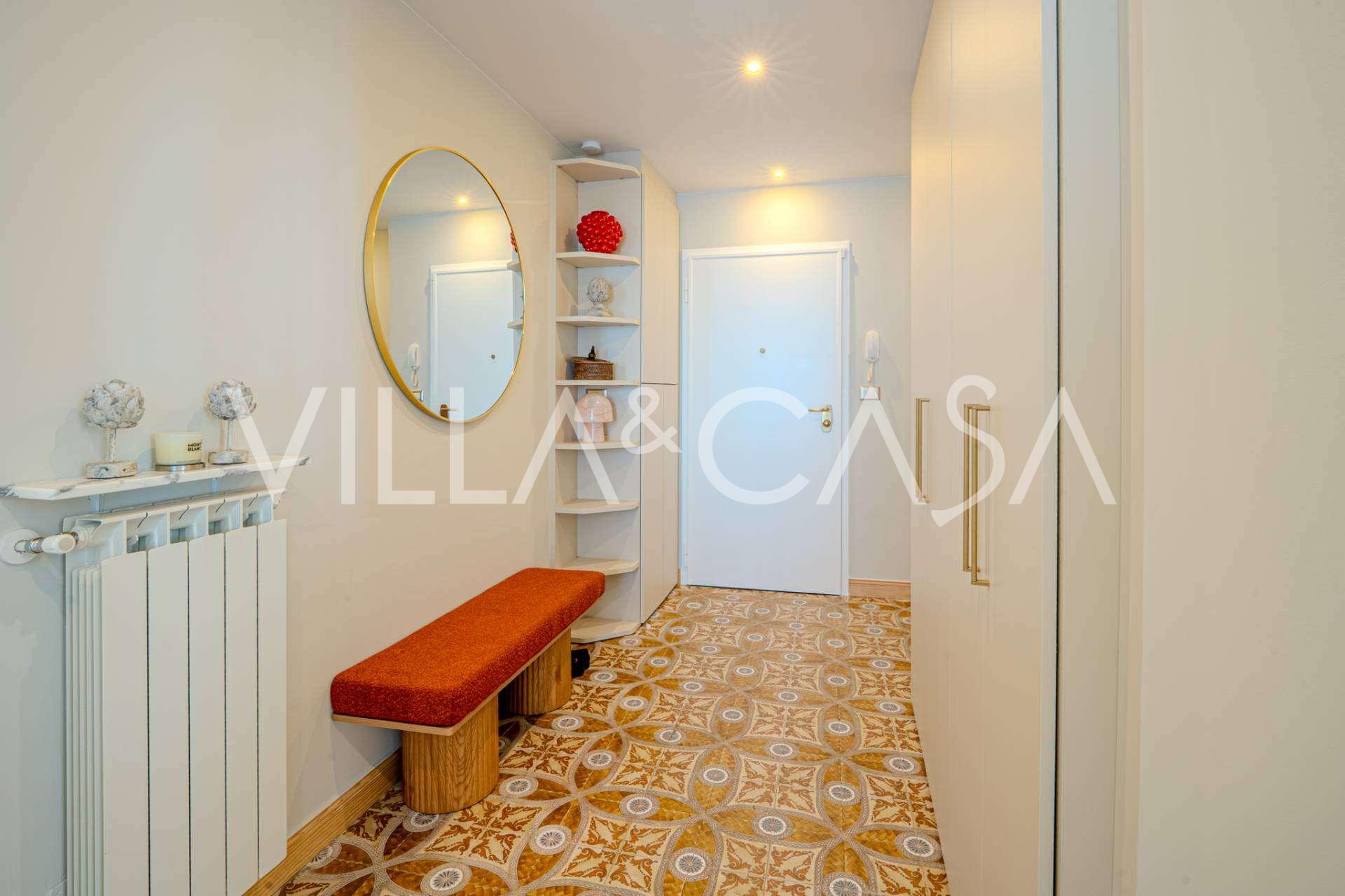公寓已全面翻新:更换了水电系统。室内配有新的设计师家具和现代高端设备,每个房间都安装了空调,并配有报警系统和独立供暖。