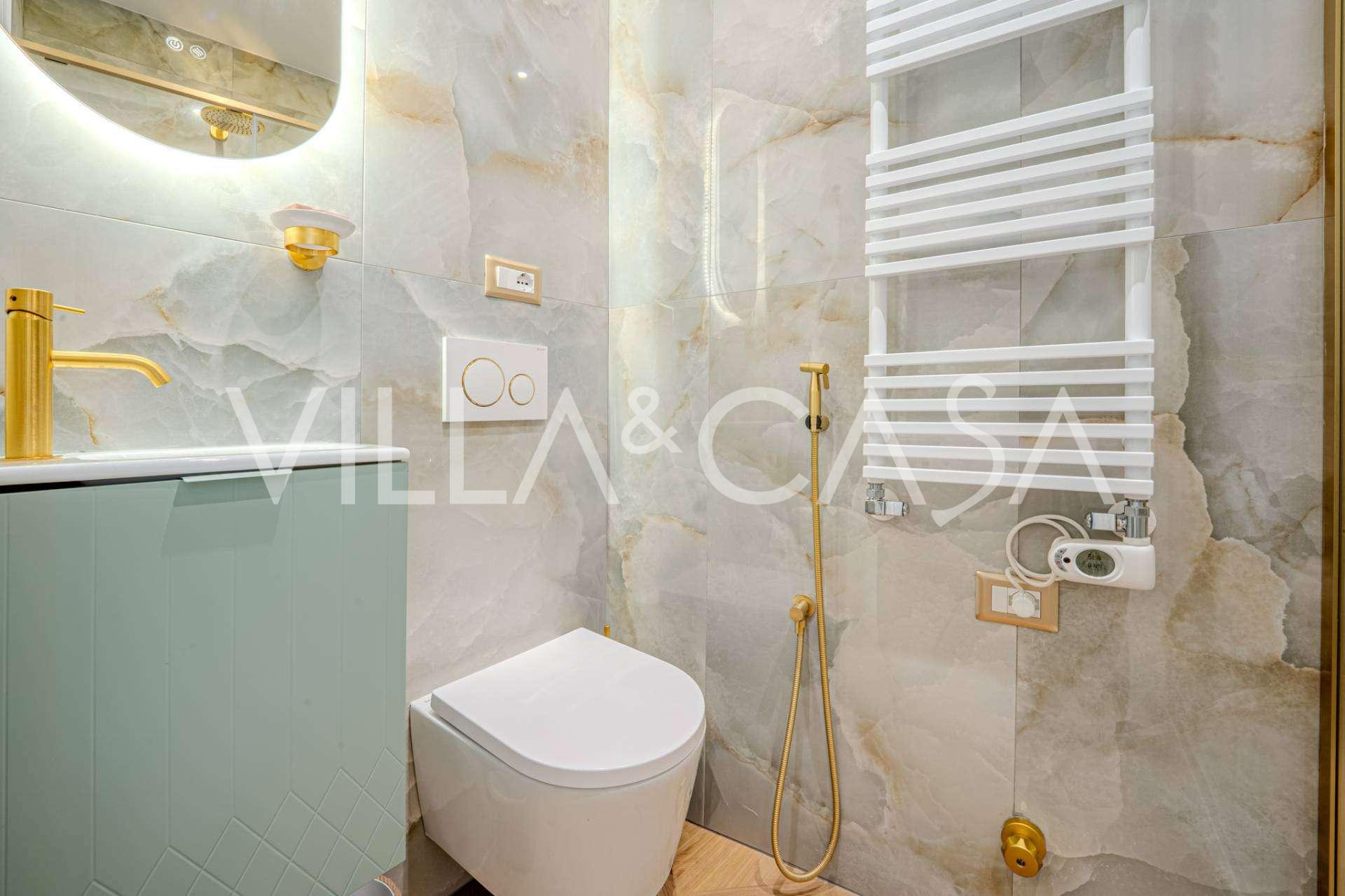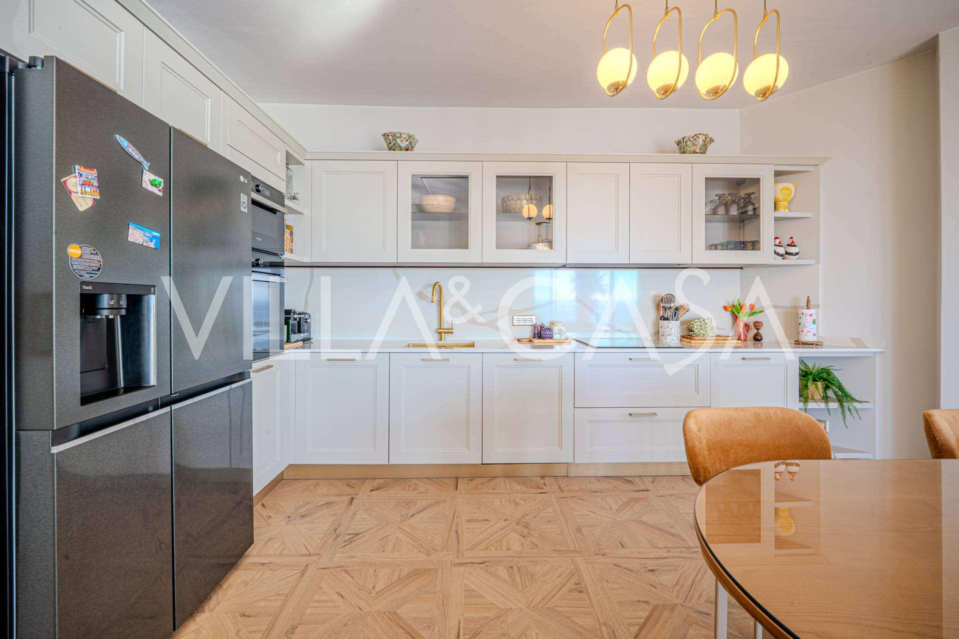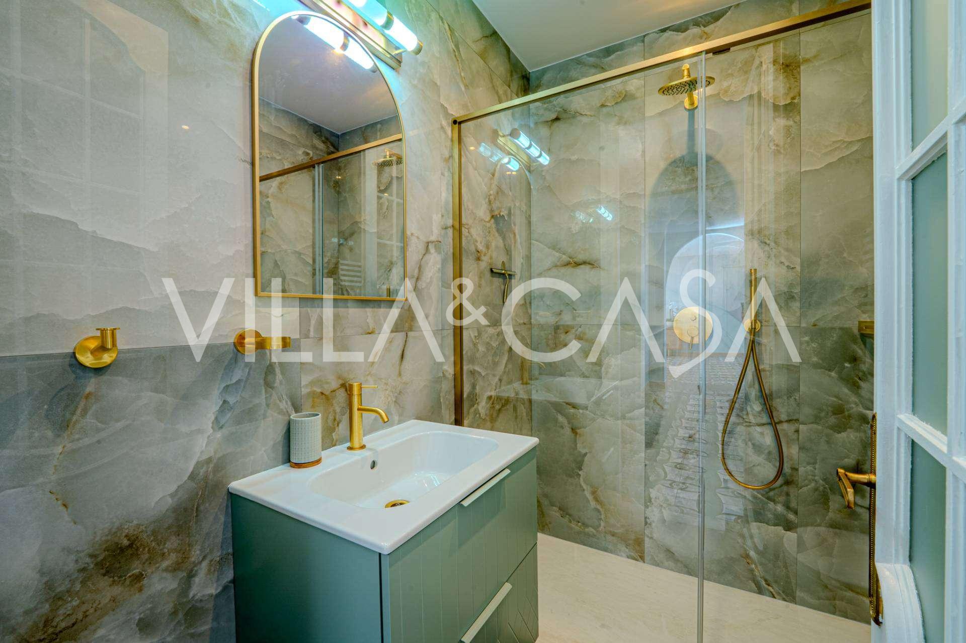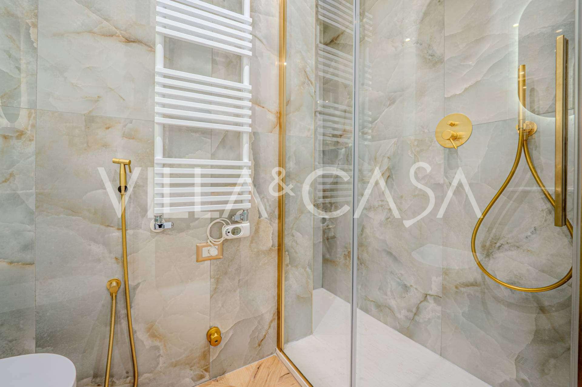 公寓已全面翻新:更换了水电系统。室内配有新的设计师家具和现代高端设备,每个房间都安装了空调,并配有报警系统和独立供暖。