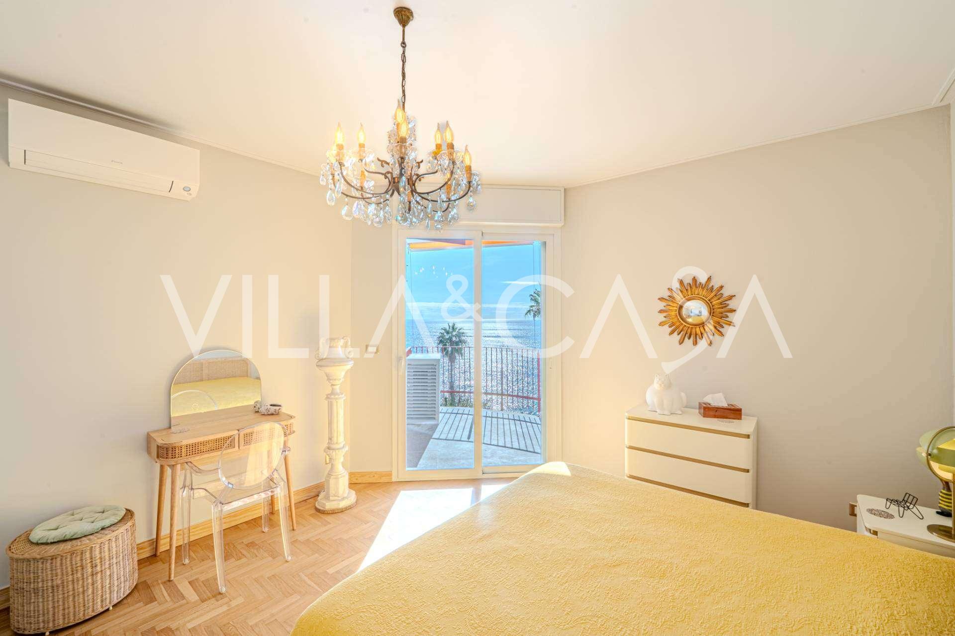 在著名度假城市圣雷莫的一线海景位置,提供一套约130平方米的豪华公寓出租,位于一栋带电梯的高档建筑的一楼。
