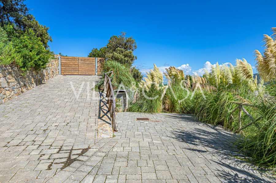 通过精致的私人大门进入该区域,通往舒适隐蔽的停车场。被绿意环绕的道路通向别墅的安全入口,别墅位于同一水平面上,确保了空间的功能性和完整性。