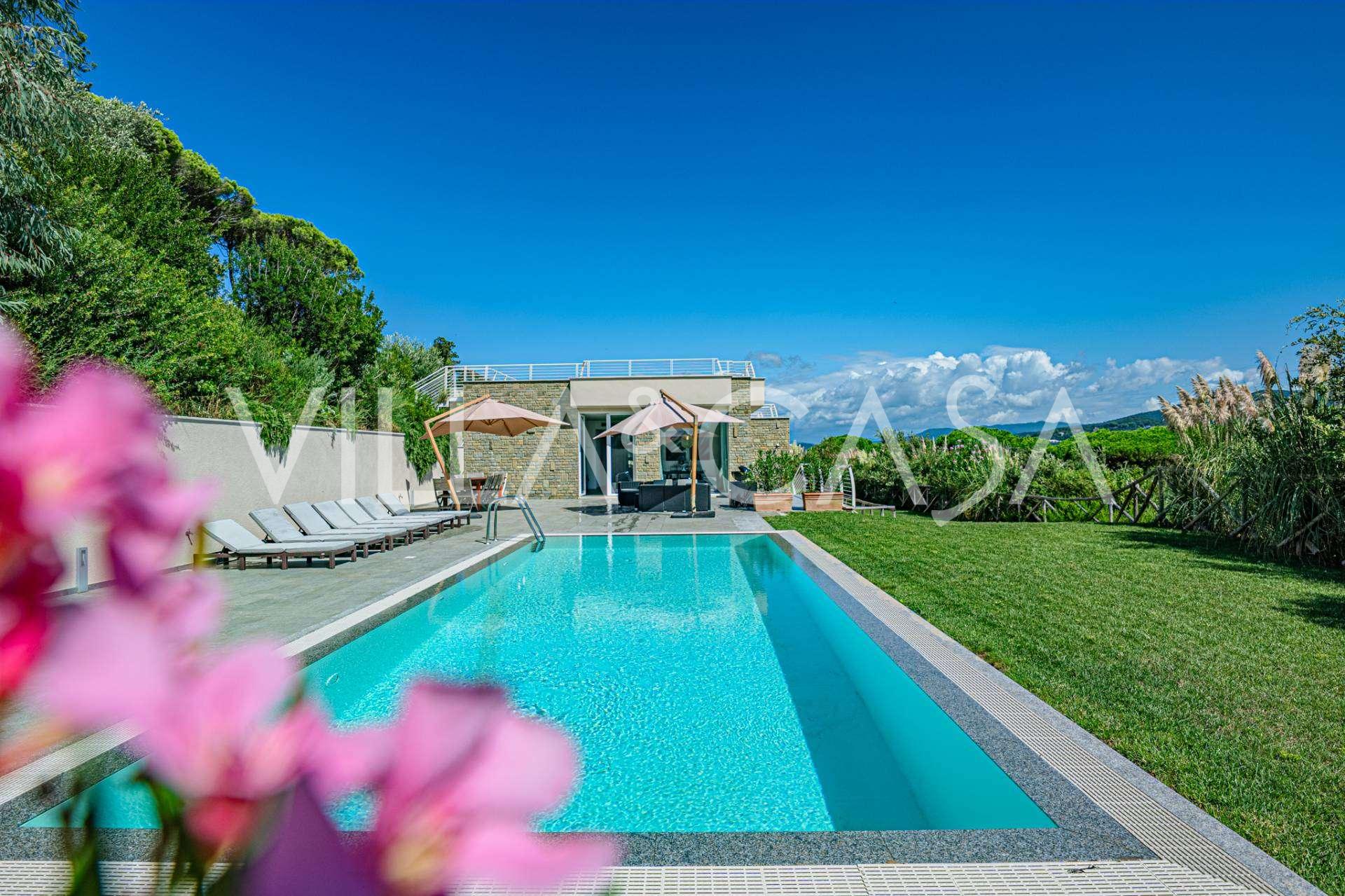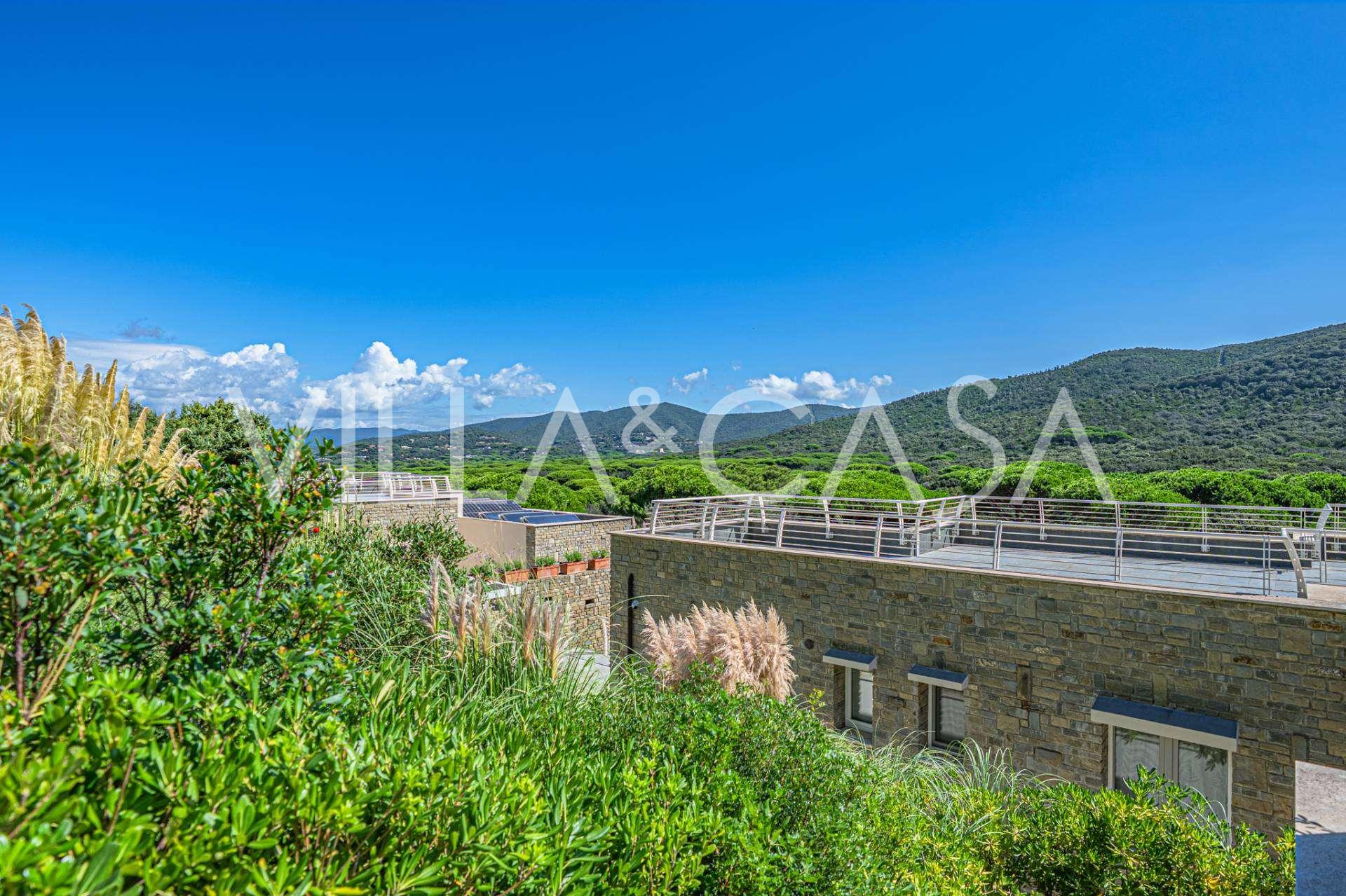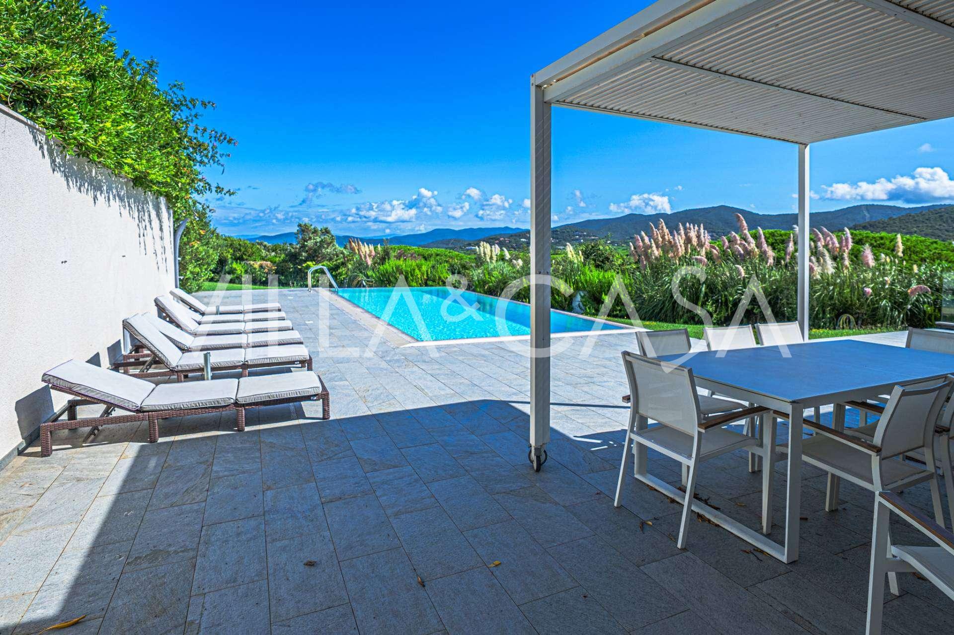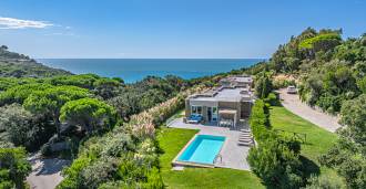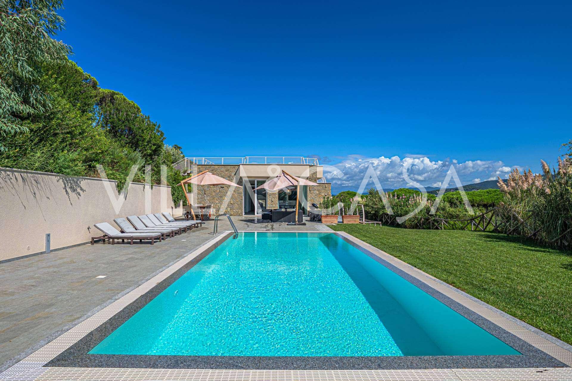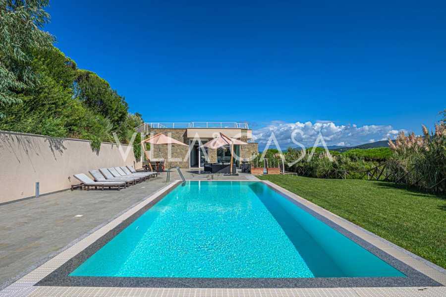 这座位于Punta Ala的Poggettone高档地段的新建别墅,完美结合了现代建筑、自然环境和创新技术。别墅面积约300平方米,周围环绕着4000平方米的私人公园,设有壮观的全景游泳池。这处房产是托斯卡纳Maremma中心的奢华瑰宝。