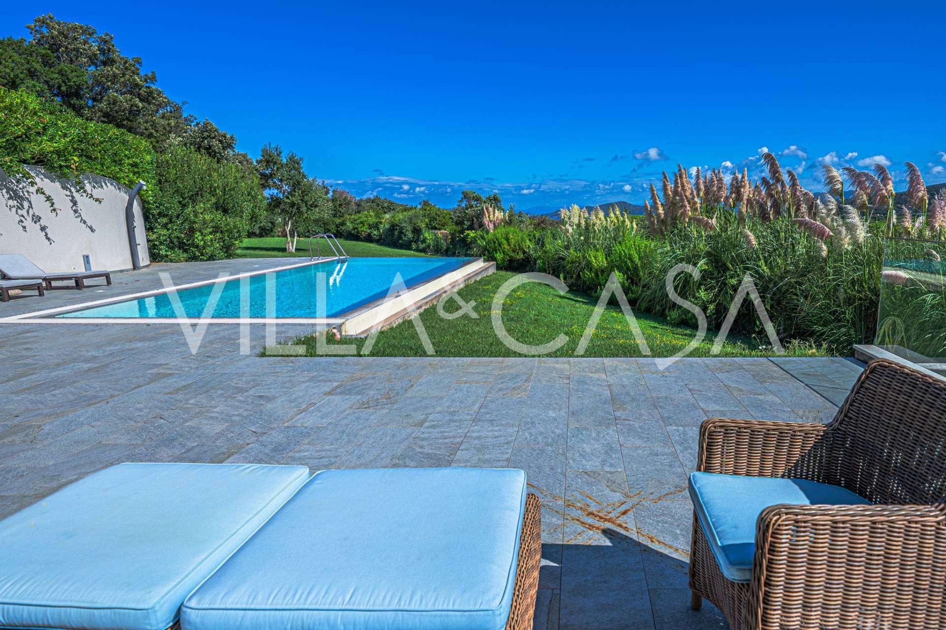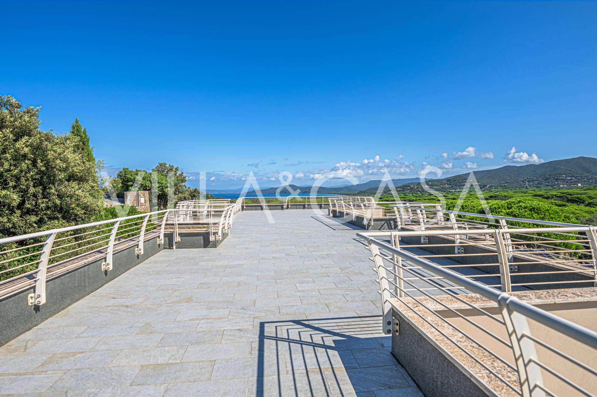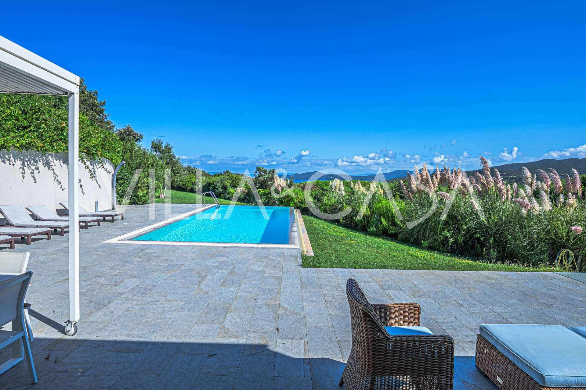 泳池周围是日光浴区,配有躺椅和设计师家具,是开放空间的中心:这是一个理想的休憩之地,可欣赏海湾的壮丽景色。