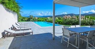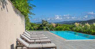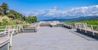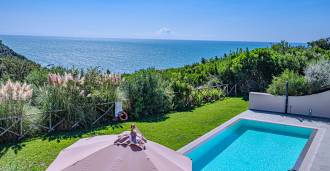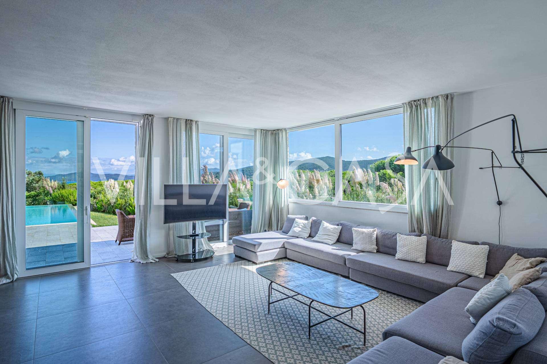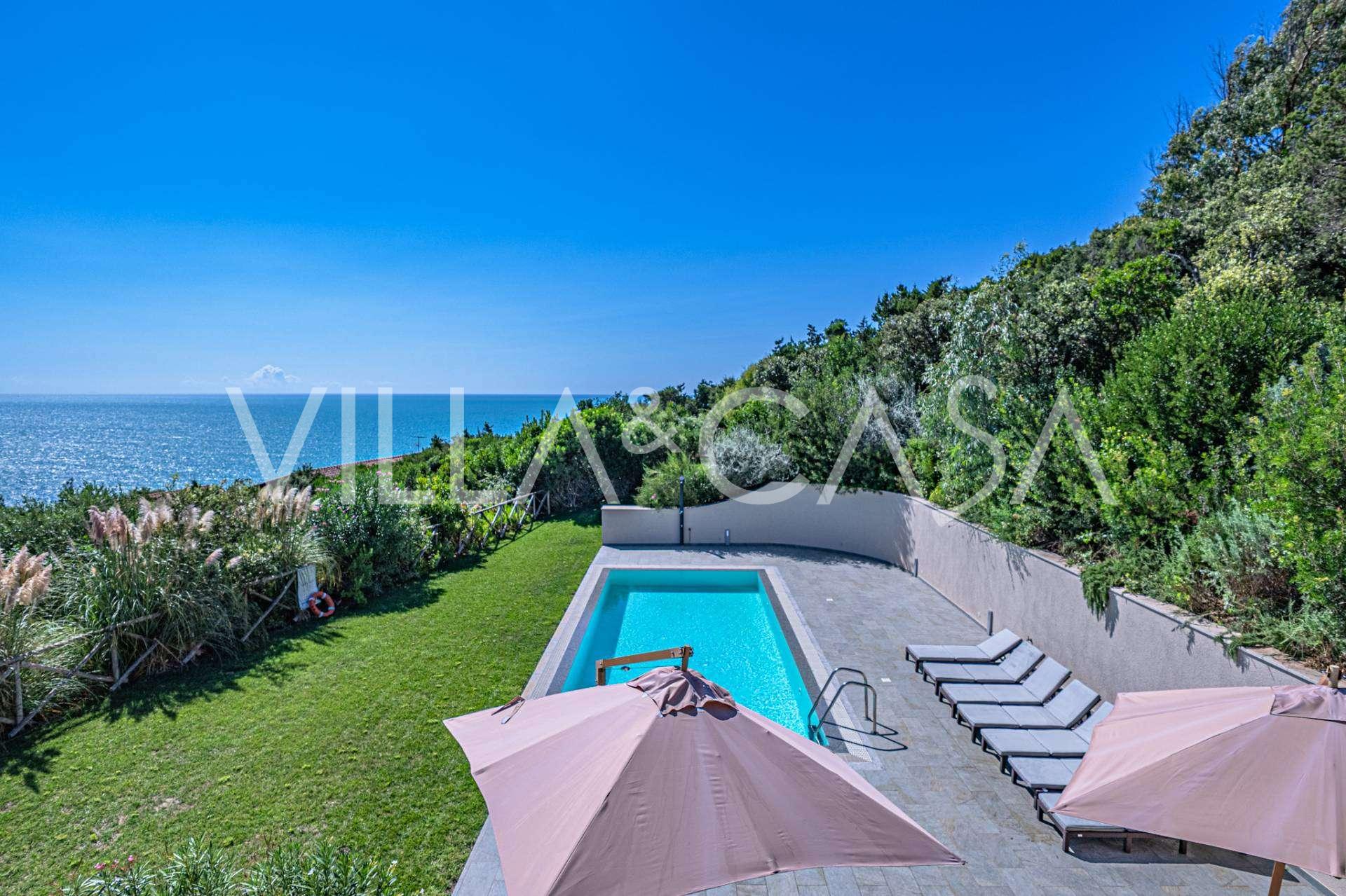 泳池周围是日光浴区,配有躺椅和设计师家具,是开放空间的中心:这是一个理想的休憩之地,可欣赏海湾的壮丽景色。