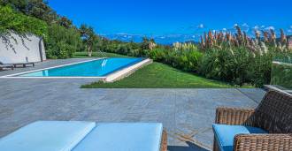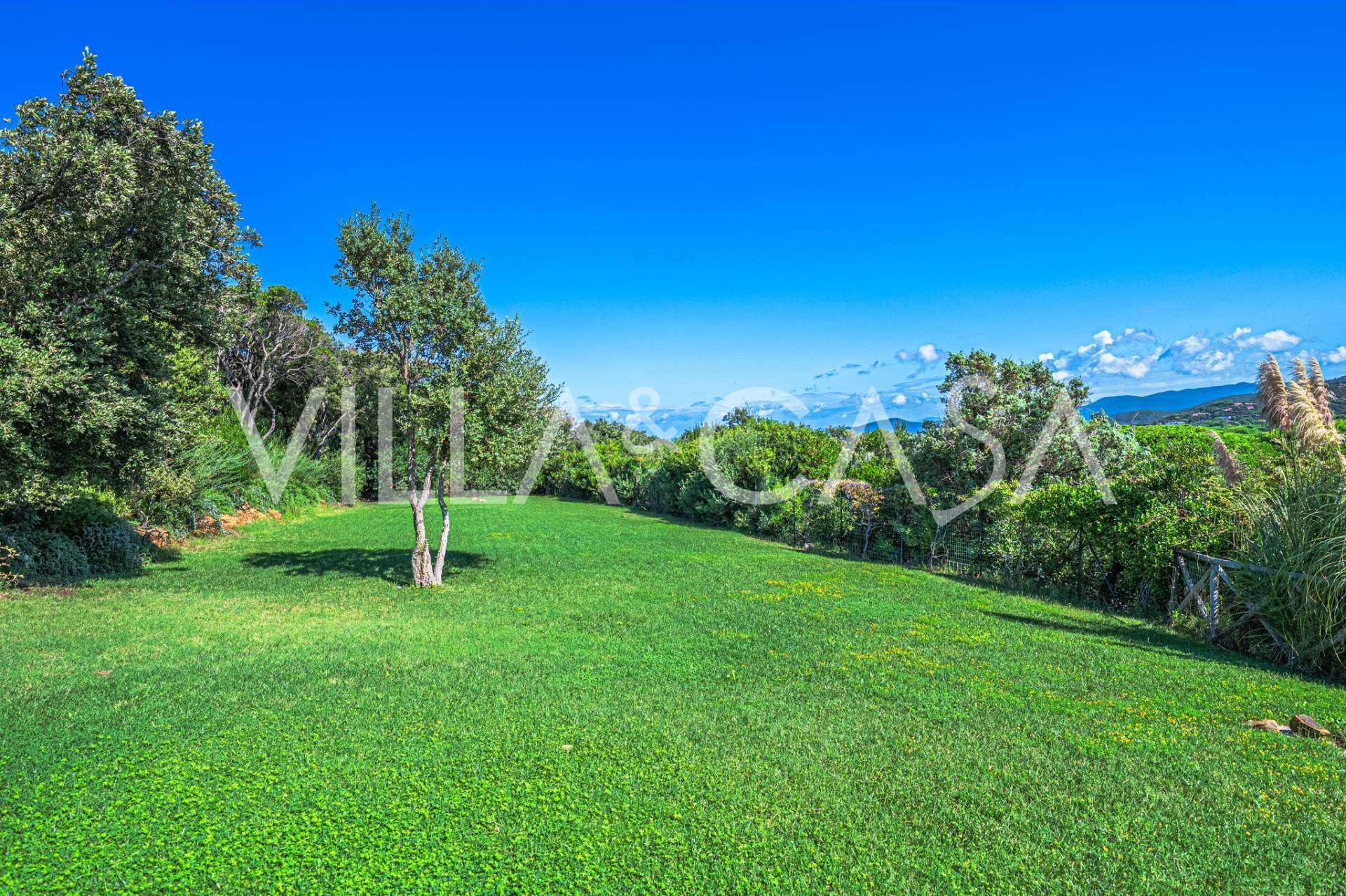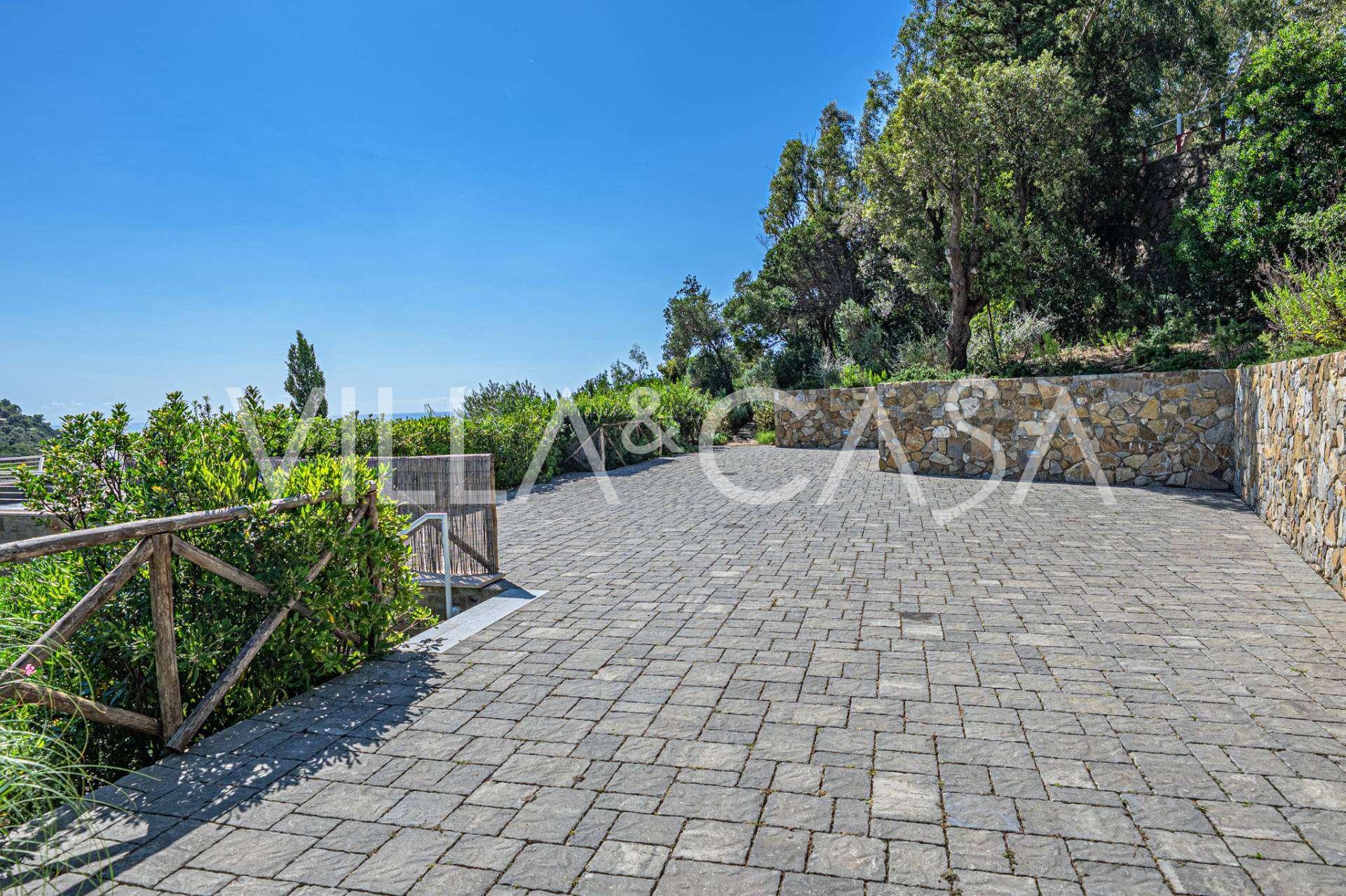 4000平方米的私人公园完全围栏并精美布置。地中海植被与棕榈树和鲜艳的花朵交替出现,营造出异国情调的氛围。