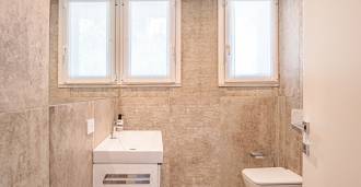 高水平的装修:卧室采用精美的实木地板,客厅铺有优雅的瓷砖,明亮的色调突出了室内的明亮。