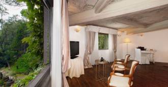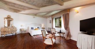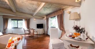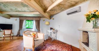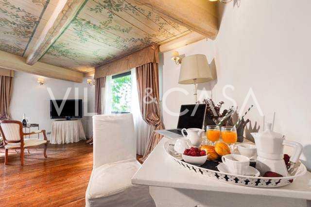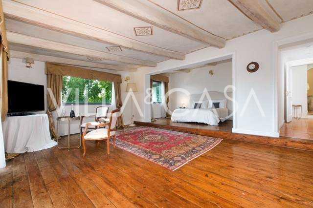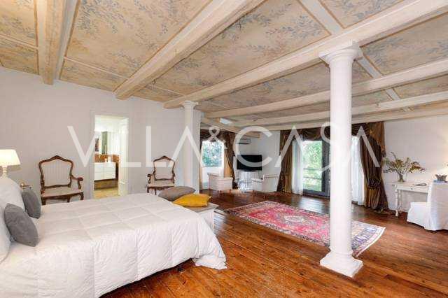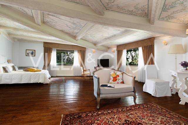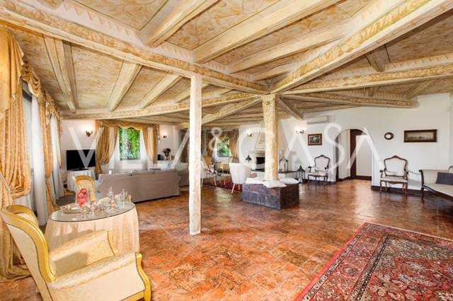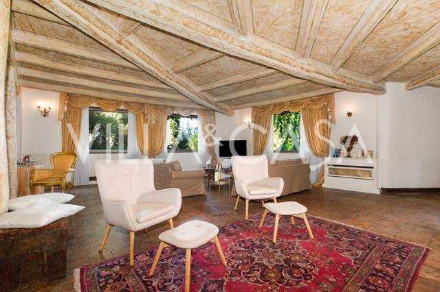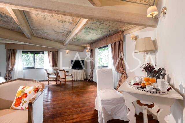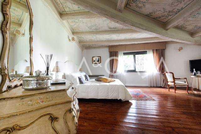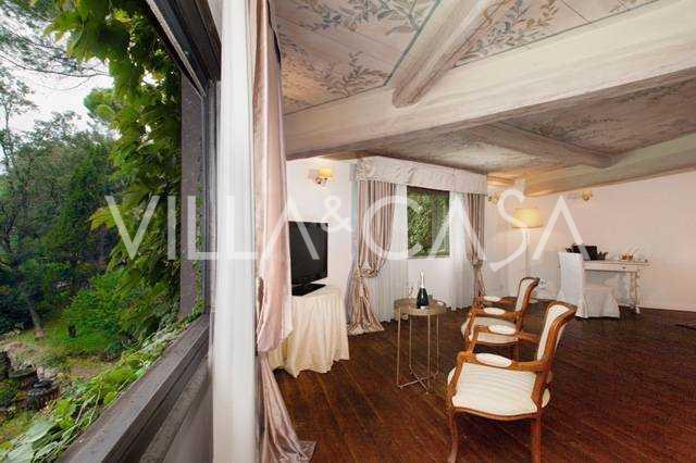 在Tor Crescenza城堡的私人公园绿意盎然中,坐落着一座优雅的别墅,周围环绕着独特的历史和景观组合。艺术精湛的喷泉、雕塑、全景露台、瀑布和风景如画的小径营造出一种真正贵族的居所氛围。