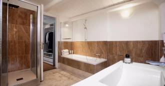 私人区域设有四间豪华套房,每间都配有独立浴室和更衣室。